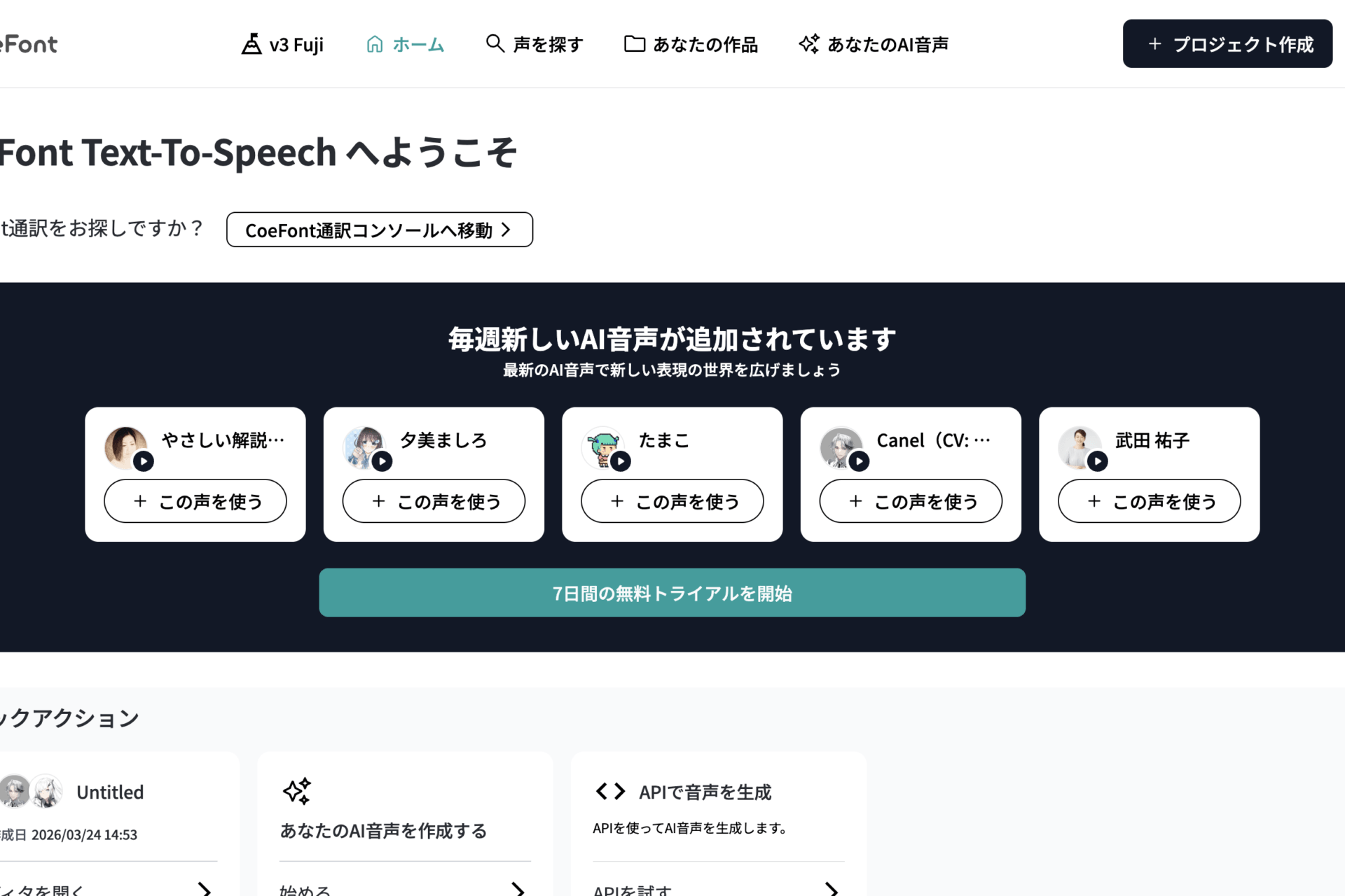 CoeFontの魅力は、国内サービスとしての安心感と、音声バリエーションの多さです。料金ページの表現でも、声優・ナレーター・著名人など多様な音声の存在を打ち出しています。無料プランでも一部利用できる一方、商用利用やクレジット表記条件は有料プラン側が前提になります。